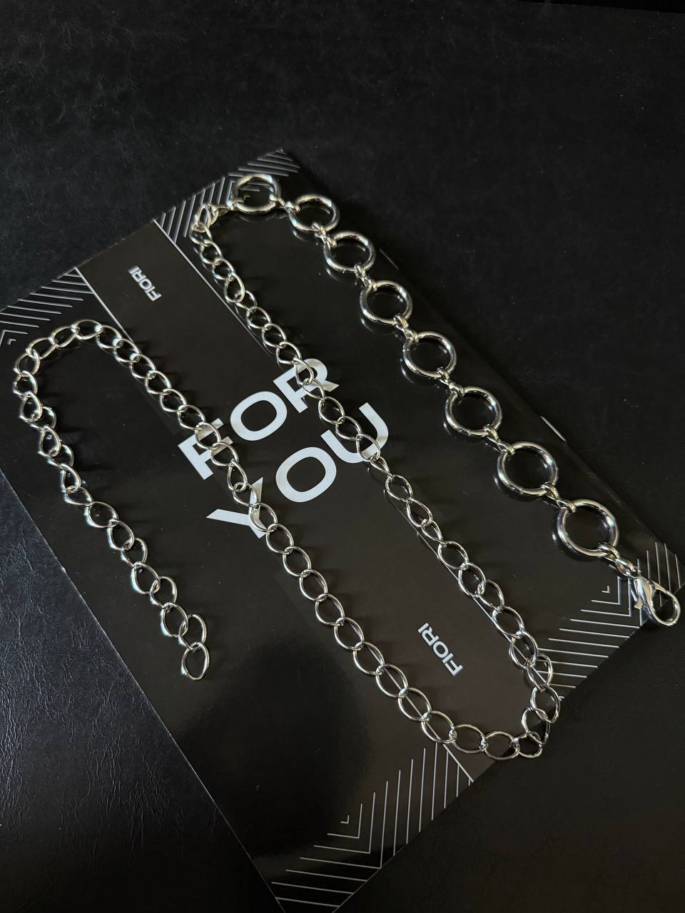 حزام فضي أنيق بتصميم عصري من حلقات معدنية لامعة، مثالي لإضافة لمسة جريئة لأي فستان أو لوك يومي.