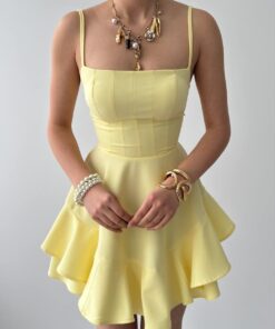 فستان أصفر بطبقات الكشكش الراقصة💛
