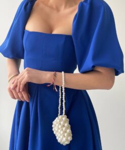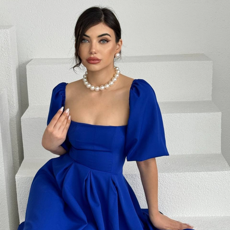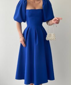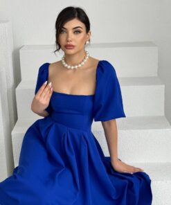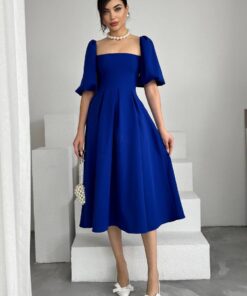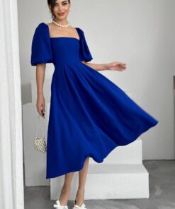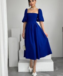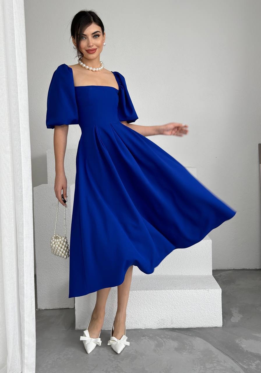فستان ملكي أزرق بقصة كلوش وأكمام منفوشة💙