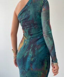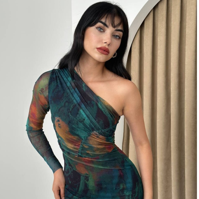 فستان بتصميم الكتف الواحد بنقشة ساحرة