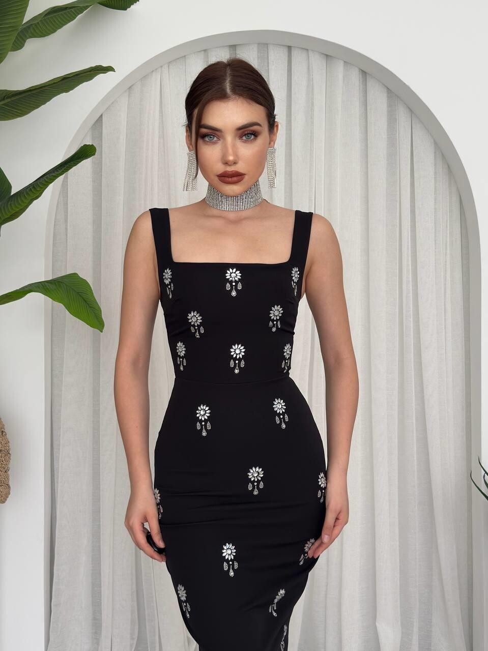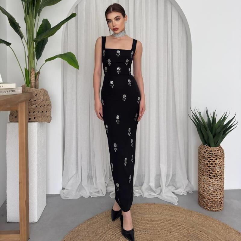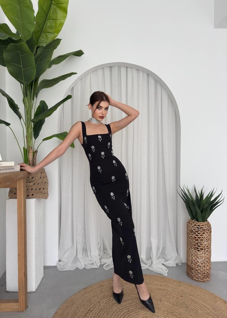 فستان Ners بتفاصيل الأحجار اللامعة🖤